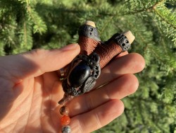 Ručně vyrobené tepi z bambusu zdobené vulkanickými a polodrahokamovými korálky, polymerovou hmotou a peřím